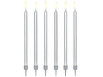 Świeczki urodzinowe gładkie, srebrny, 12,5cm (1 op. / 12 szt.)